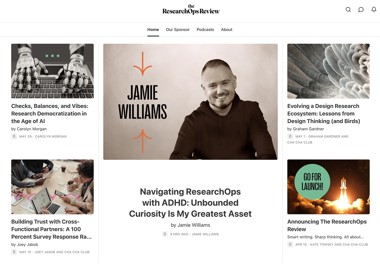 The ResearchOps Review is a practical and thoughtfully produced publication about Research Operations, for ResearchOps professionals. I supported founder of the Cha Cha Club, Kate Towsey, with a custom writer’s training for club members and editorial services for twelve inaugural articles.